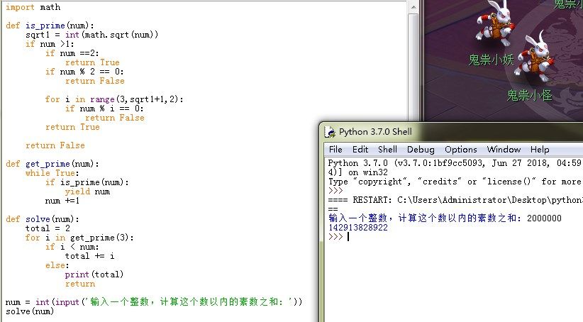 1. 10 以内的素数之和是:2 + 3 + 5 + 7 = 17,那么请编写程序,计算 2000000 以内的素数之和?
